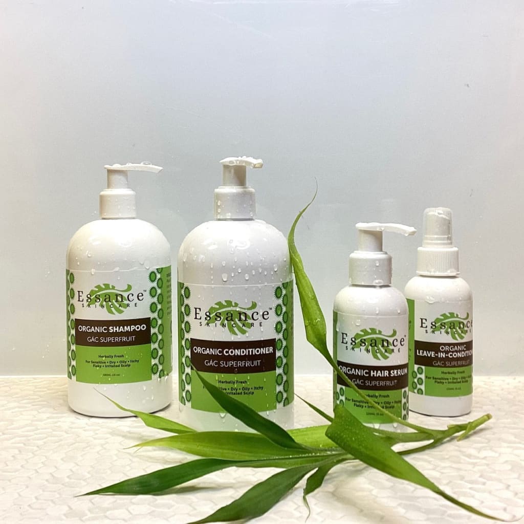 Popular products include daily cleansers, toners, serums, moisturizers, and hair care treatments. At Essance, our Multifruit Peptide & Collagen collection and GAC Superfruit Hair Care system are customer favorites for their gentle yet effective circulation-boosting and barrier-strengthening results.